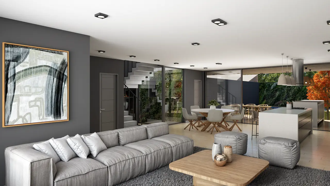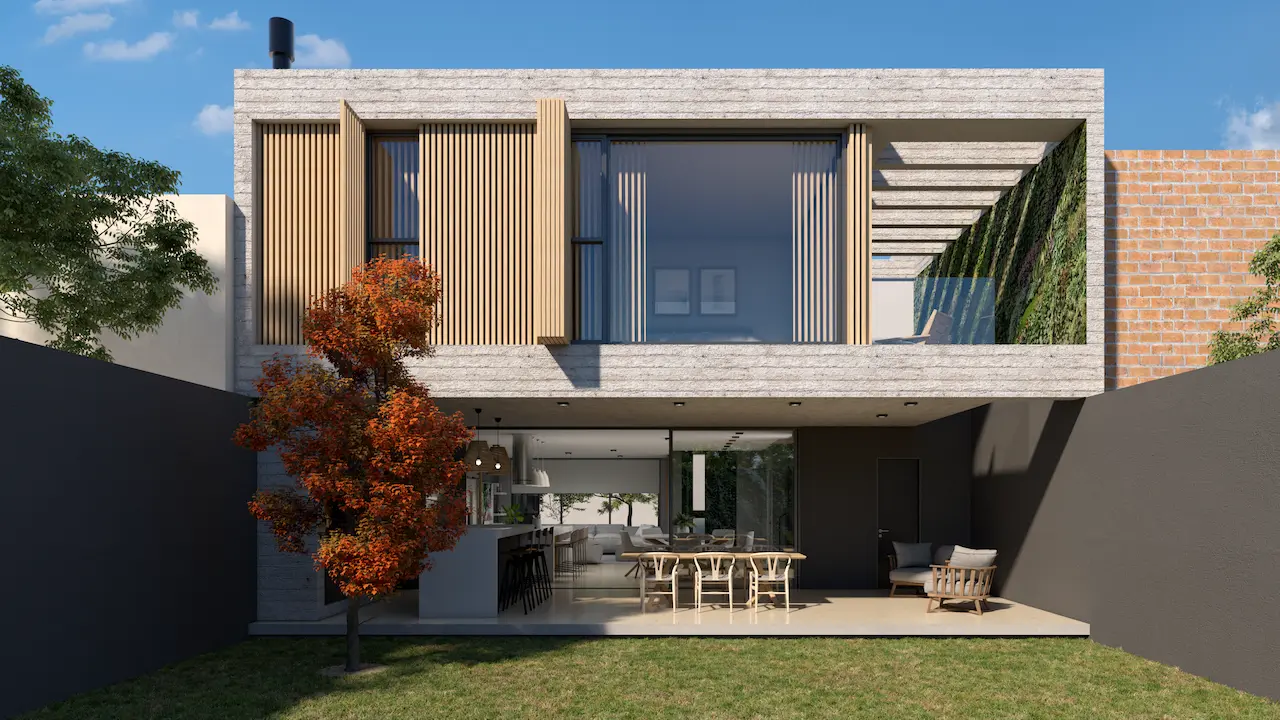 Vivienda urbana ubicada en Juan B. Justo 47, Vicente López, concebida con un diseño moderno que maximiza la luz natural y la conexión con el entorno. Su distribución fluida y estratégica incorpora un patio interno vegetado como pulmón verde central, generando ventilación cruzada y bienestar térmico. Grandes ventanales, claraboyas y aberturas en cubierta aseguran iluminación cenital y visuales abiertas hacia el jardín y la pileta. El proyecto combina estética contemporánea y sostenibilidad, integrando interior y exterior para potenciar el confort y la eficiencia energética en la vida cotidiana.